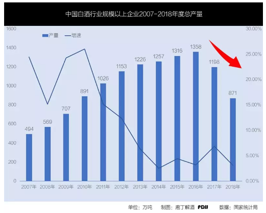 盡管統計數據存在問題,但從”規模以上酒企的產量下降、規模以上酒企家下數減少“來看,庖丁解酒認為白酒行業可能正進入了一個“產量下降”的階段,這表明大量的小酒企、分散的產能在逐步退出,在產品品質上可能會呈現出一個優化的過程。