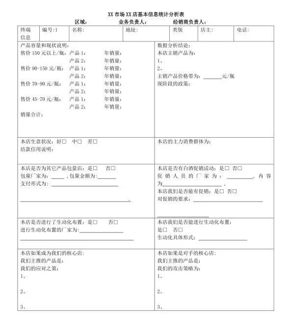 ①樣板鄉鎮的核心酒店,業務人員要加強回訪頻次,正常情況之下三天必須回訪一次。對酒店當天的綜合情況做好書面記錄,其中包括:動銷情況、庫存情況、陳列情況、競品情況、終端生動化乃至酒店配合的情況,分析當天酒店存在的問題,提出合理化建議并積極加以解決;如遇困難要在當天以口頭或書面的形式告知部門經理,在最短的時間范圍內協調解決相關問題。