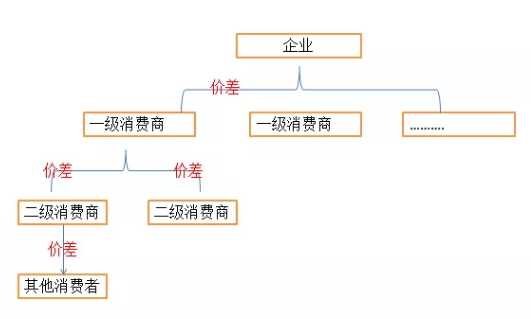 效仿對(duì)比傳統(tǒng)的渠道鏈,消費(fèi)鏈當(dāng)中的企業(yè)對(duì)標(biāo)為渠道鏈中的企業(yè);消費(fèi)鏈當(dāng)中的一級(jí)消費(fèi)商對(duì)標(biāo)為渠道鏈當(dāng)中的經(jīng)銷商;消費(fèi)鏈當(dāng)中的二級(jí)消費(fèi)商對(duì)標(biāo)為渠道鏈當(dāng)中的終端。