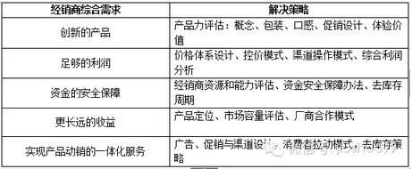 只有適度創新的產品和服務并行才能滿足當前客戶的“綜合需求”。在這個競爭激烈的時代,企業早就在兩年前開啟了“搶商戰”,渠道好、實力強的經銷商是酒企爭奪的主要對象,但還是要在經銷商方面做好培育工作,這樣企業才能借助他們的力量,進一步提高自己的業績。當然,想培育好經銷商,企業必須了解經銷商有哪些具體的需求,筆者認為包括產品、利潤、資金、收益和服務五方面。(如下表所示)