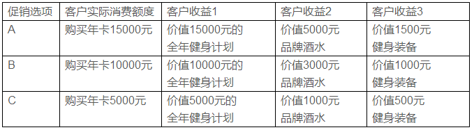 雙方完成產(chǎn)品置換后,健身房將置換所得酒水作為“增值服務(wù)”與年卡、季卡打包銷售,促銷方案見下表: