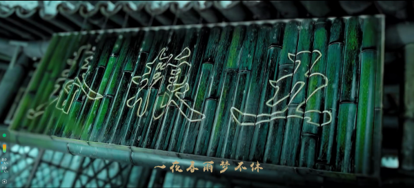 綠色代表著生機盎然的生命情態,紅色是中華文化中的傳統色彩,往往與兒女情長相關聯。男女主一會兒在竹林上空騰飛,一會兒在竹林中穿行,一會兒又踏水而過,瀟灑肆意的情狀既展現了中國獨有的武俠文化,又含蓄表達了男主之間的愛情,給人帶來極大的審美享受。