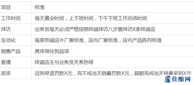 事前建標準:把業務員每天要工作目標建立標準,把所有該出現的問題全部用制度形式確立下來,如: