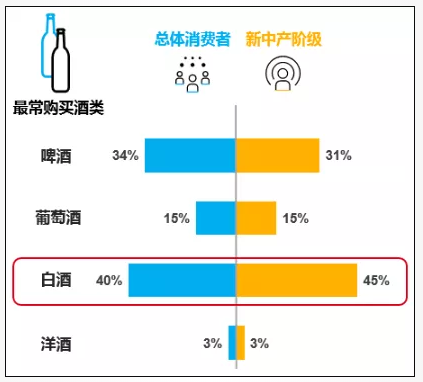 眾所周知,白酒次高端的主力消費客群以中產階級消費為主,根據尼爾森 《2017-2018年度中國酒類趨勢研究報告》 表明新中產階級熱衷喝白酒 (45%),與整體消費者相比,新中產階級的白酒消費特點分為三點,第一是高消費,一年中每月白酒消費超過1000元的比例達到27%。第二是青睞次高端產品,購買次高端產品的消費者超過兩成,達到占22%。第三是具備增量潛力,新中產階級對未來的預期是想買更多的白酒。通過以上三個特點,可以看到目標客群在未來的次高端白酒市場的巨大潛力。