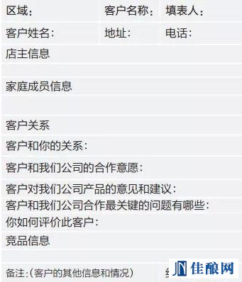 要做終端客情維護(hù),經(jīng)銷商可以參照以下表格,按表來做統(tǒng)計,掌握客戶信息的同時,也了解了客戶需求,今后也方便長期保留。